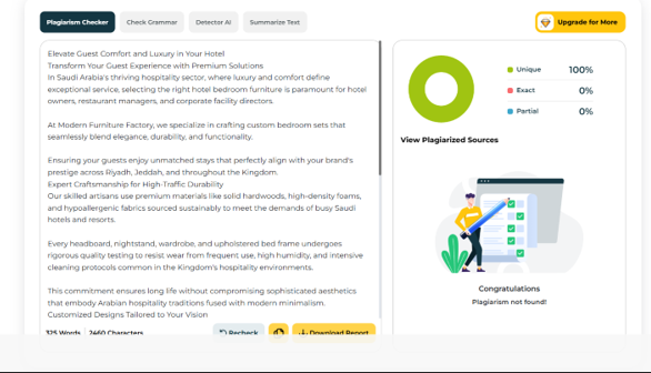 Our skilled artisans use premium materials like solid hardwoods, high-density foams, and hypoallergenic fabrics sourced sustainably to meet the demands of busy Saudi hotels and resorts.